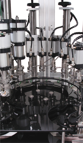• L.P.A.V. filling system to perform crimping and pre-charging of propellant on a single station. The unit is configured to handle liquefied and compressed gas propellants on the same station;