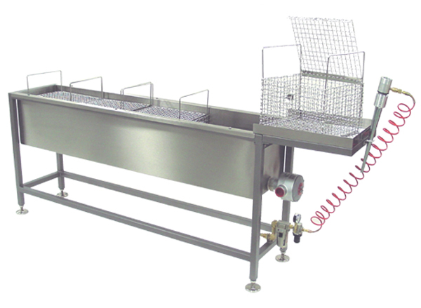 It features an epoxy-coated structural steel frame, polished stainless steel tank and stainless steel container baskets.